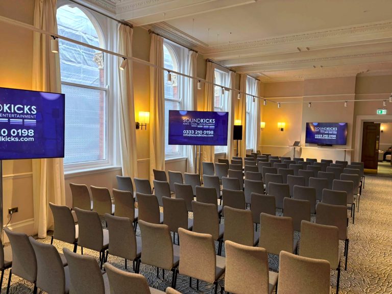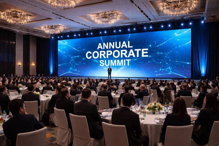 Event AV creates professional on-screen content for live events — from branded slide decks and sponsor loops to visuals and graphics for screens and video walls. We will cue and control everything live on the day, perfectly timed with speeches, awards, sound and lighting.