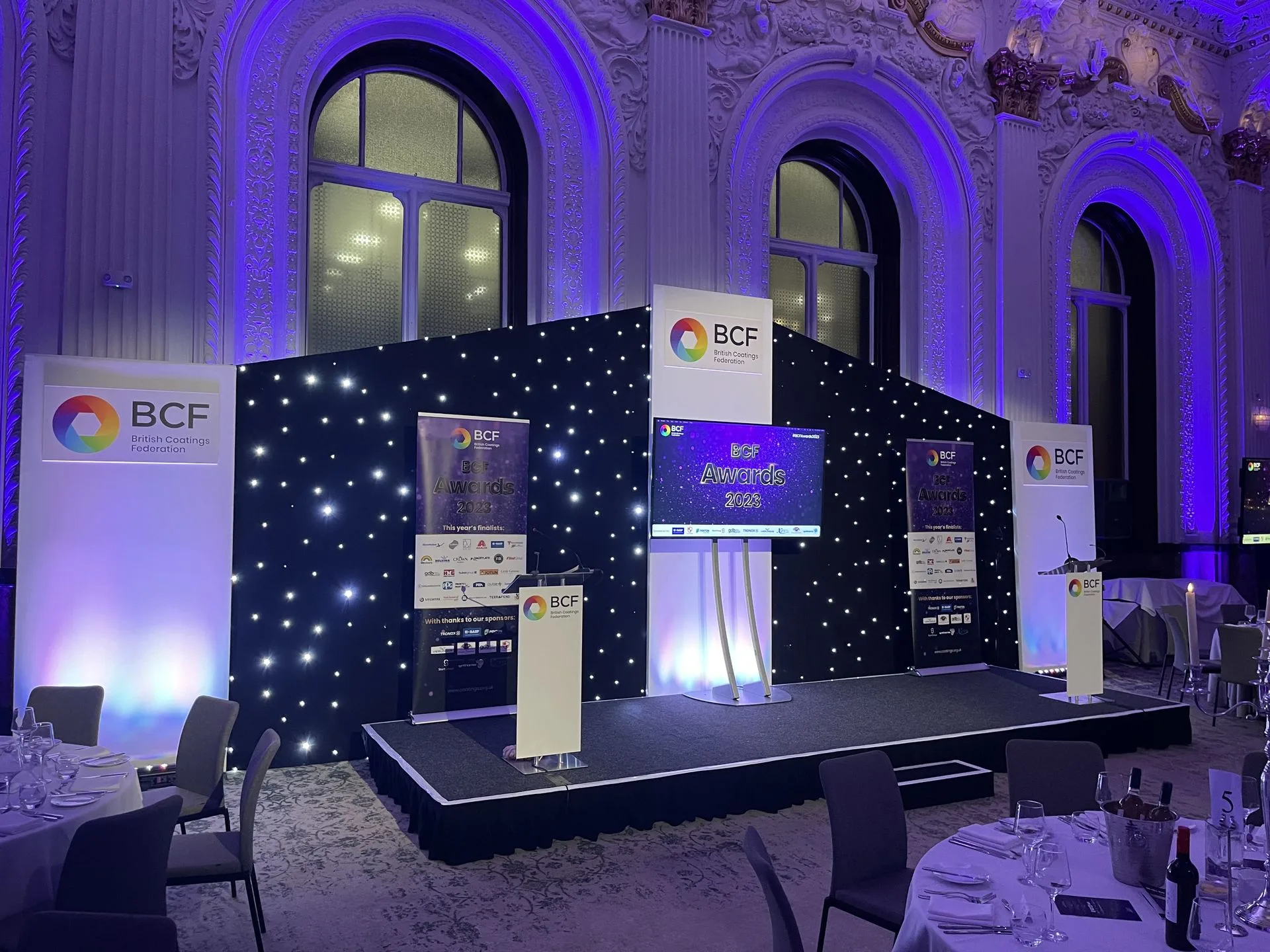 A strong stage set instantly elevates the room. Event AV provides professional stage sets across the Midlands and surrounding areas, designed to give your event a polished, high-end look — whether it’s a conference, awards ceremony, presentation or company celebration.